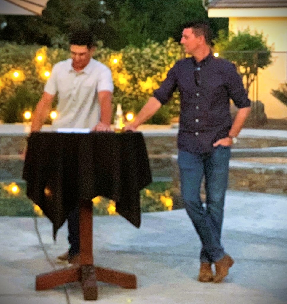 Sammy: And in honor of that, we’d like to present you with a token of our appreciation with these three bottles of wine from J. Lohr, a man who also successfully committed himself to business and who has also recently passed his thriving business along to his children.